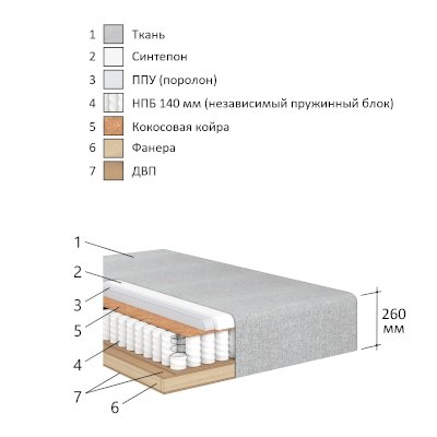 Наполнение сиденья: Независимый пружинный блок (НПБ) 140 мм, ППУ ST2236 40 мм, Войлок
