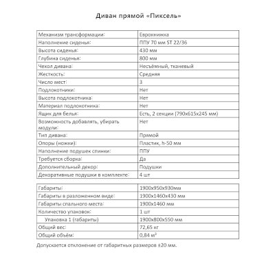 Диван Пиксель (Аквилон) – товар доступен к покупке в интернет-магазине tulskiy-dommebeli.ru. Цена – 30 317 руб. без учета доставки. Стоимость дополнительных услуг и сроки получения мебели уточняйте у менеджера. Возможен безналичный расчет, оплата по карте на сайте.